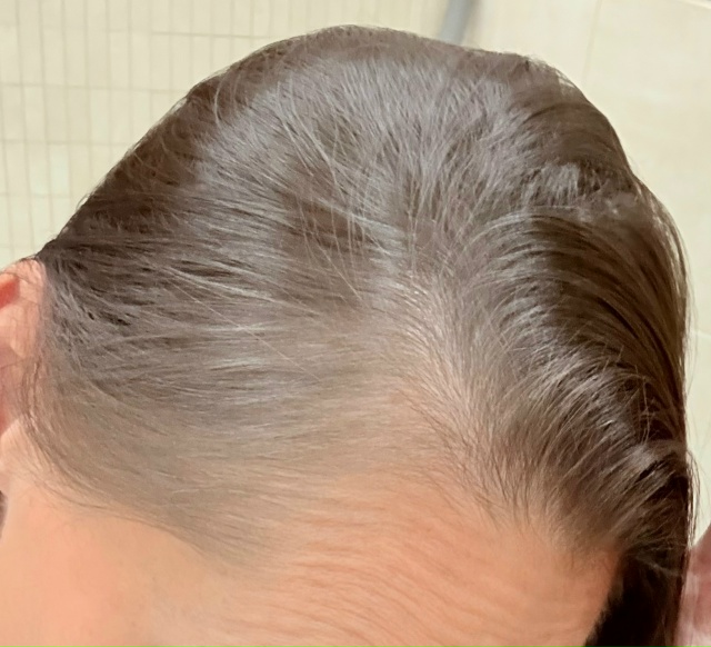 а у меня ее с глубокой молодости не было. Первая мысль - обломались волосы. Но сравнила фото за несколько лет - мамочки, это просто опустилась линия роста! Залысины от висков - затянулись пухом. Седым, правда, да и пес с ним. Голова не просвечивает. Дрожащими руками заказываю микроскоп - не верю своим глазам: бодрая ПОЛОВИНА волос - толстые жирные колбасы. Я не знаю, сколько это продлится, но лезть по-прежнему ничего не лезет, а кожа светиться через волосы перестала. Выгляжу конечно как только что проснувшийся еж, все торчит, но с этим я научилась бороться, и счастлива, что теперь бороться надо с этим